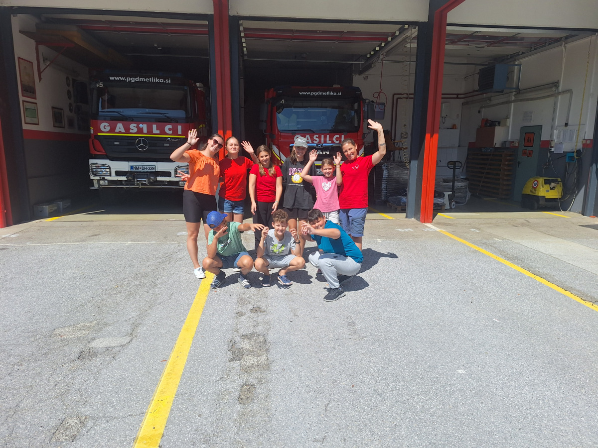 Ob 8h smo se zbrali pred gasilnim domom za zajtrk, nato smo se odpravili v Metliko kjer smo si ogledali najstarejši gasilski dom v Sloveniji. Poveljnik gasilske zveze Metlika nas je peljal pogledat njihov tabor za mlade ob Kolpi. Kasneje smo se ustavili na Petrolu za natakanje kombija in med čakanjem smo mahale sosednjemu avtu in varnostniku (vsi so pomahali nazaj, misija uspešna). Čez cesto smo šli na pico. Na Kolpi smo se vozili s kanuji in se kopali ter celo našli mrtvo ribo, ki se jo je Ambrož odločil zajahati. Ambrož je naš izlet na Kolpi tako končal z elegantnim padcem k ribi in prijetnimi vonjavami. Zvečer, ko smo se ustalili v našo hišo, smo z lučkami še odšli na sprehod do naše plaže na Krki.