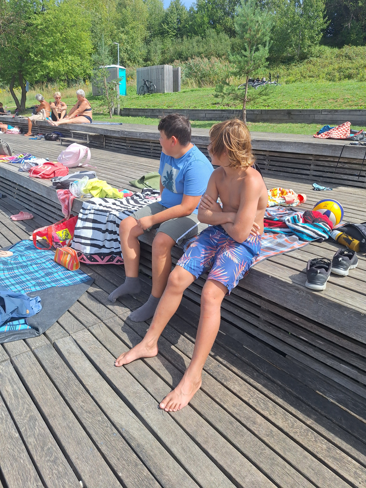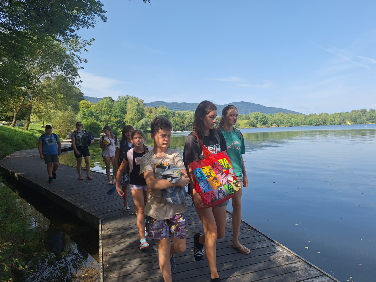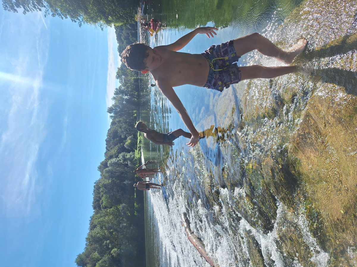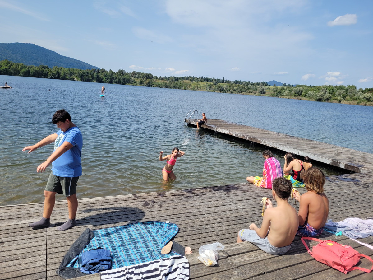 Zjutraj smo se zbudili v oblačno jutro. Pripravili smo se za zajtrk. Po zajtrku smo se odpravili na Kočevsko jezero. Ko smo prišli sta se Rok in Ambrož takoj zapodila v vodo, ki je bila zelo topla. Po nekaj časa so tudi punce prišle v vodo. Sredi jezera je bil splav, na katerega smo priplavali, potem pa skakali dol z njega. Ko smo se naveličali skakanja, smo odplavali nazaj na pomol, s katerega smo še malo skakali. Nekajkrat smo še odplavali do splava in nazaj, nato pa smo napolnili sup. Pred tem se je Ambrož s kolenom udaril v nos in je skoraj izkrvavel. Peljali smo se na supu do splava in nazaj. Davor nas je snemal, kako delamo trike in kako skačemo v vodo. Imeli smo malico. Po malici smo se še zabaaaaaaaaaavaaaaaaaaaaaaaallllllllllllllllliiiiiiiiiiiiiiiiiiiiiiiiiiiiiii. Šli smo domov, jedli kosilo in šli še na Krko. Hitro je prišel že večer, zato smo šli pečit palačinke za večerjo. Pripravili smo se za spanje in se odpravili v petek.