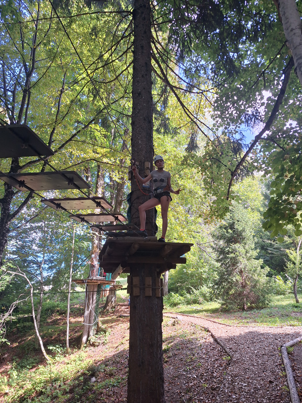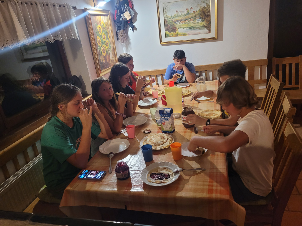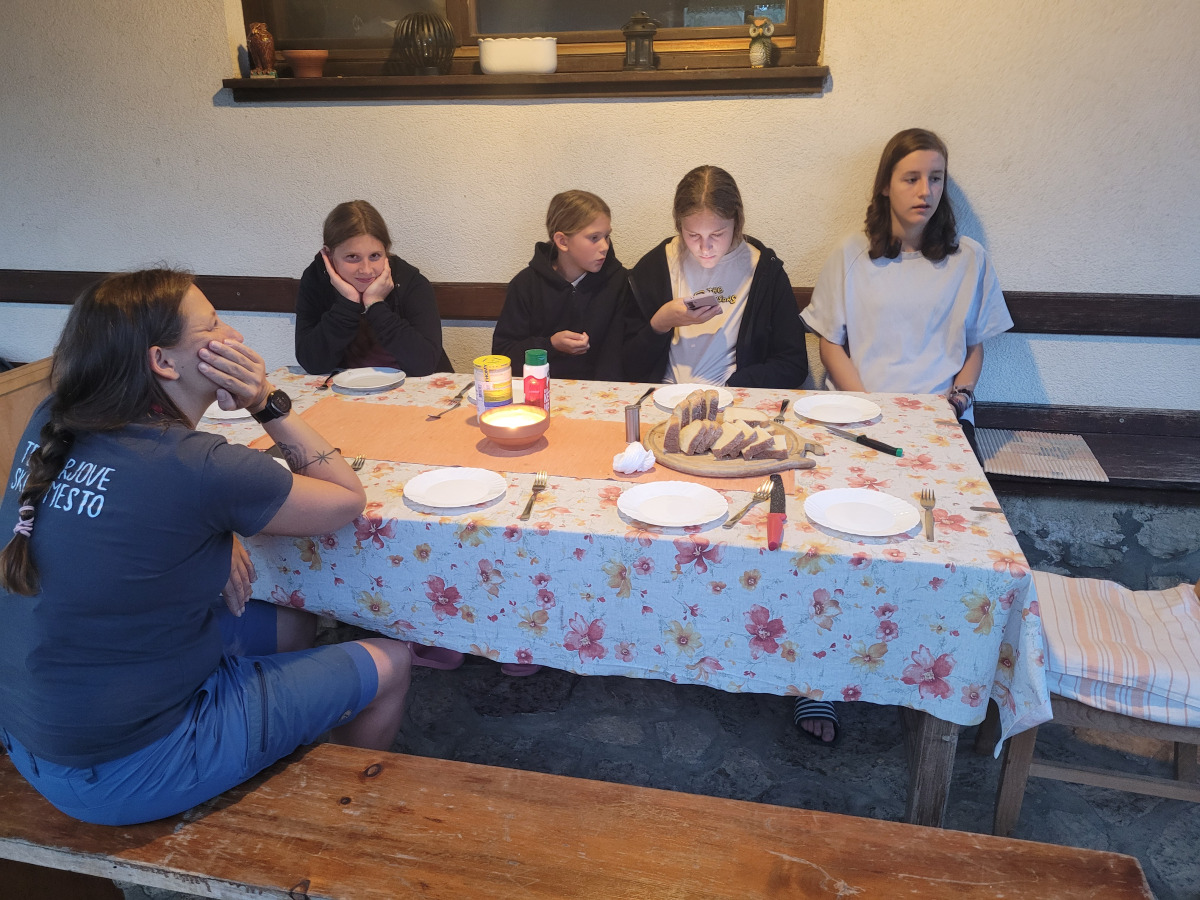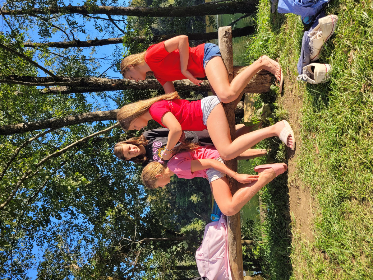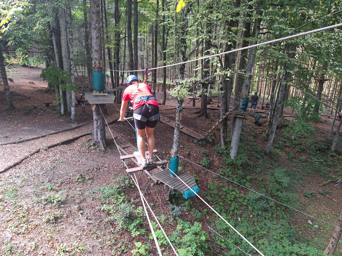 Dan smo začeli z jutranjo telovadbo v družbi muce. Zajtrkovali smo kruh in salamo, kasneje smo šli po jabolka in sladoled v trgovino. Zaradi Sašine pozabljivosti smo morali domov po njen ruzak, kjer smo tudi odložili jabolka. Odpravili smo se do učne poti Divji potok pri Črmošnjicah, kjer smo si ogledali mini slapove. Po nekaj urah zabave in muk smo končali s plezanjem v pustolovskem parku Gače, tam smo imeli tudi kosilo. Ko smo prišli nazaj, smo se takoj odpravili plavat. Voda ta dan je bila izjemno mokra in mrzla – imela je imela kar 18.2 stopinj. Nato smo igrali še odbojko. Po odbojki smo se odpravili nazaj do hiše, kjer nas je čakal poveljnik PGD Zreče Marjan Jelenko, ki je bil tudi policaj. Povedal nam je zanimive zgodbe o njegovi policijski in gasilski karieri. Skupaj smo povečerjali, odigrali še partijo kart in lam. Pol smo šli spat. Najboljše dogodivščine so nam bile pustolovski park in Marjanove zgodbice.