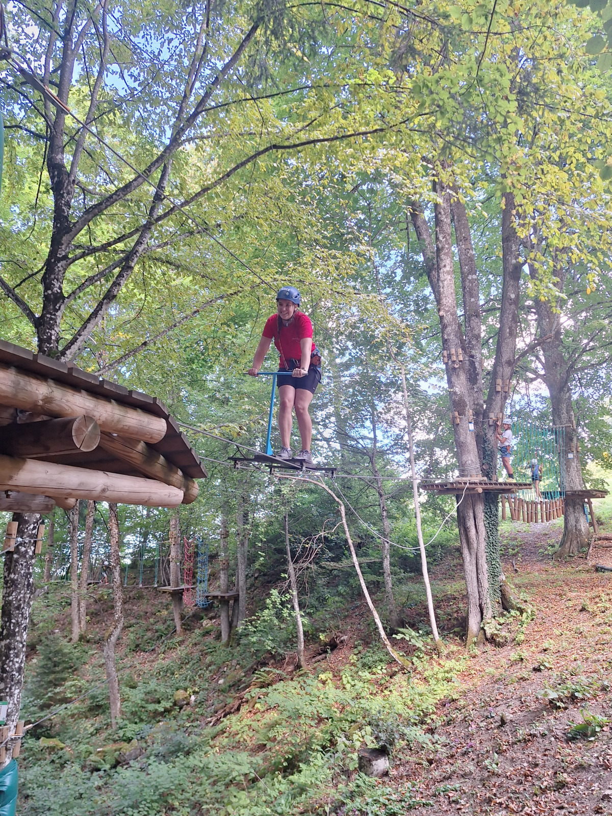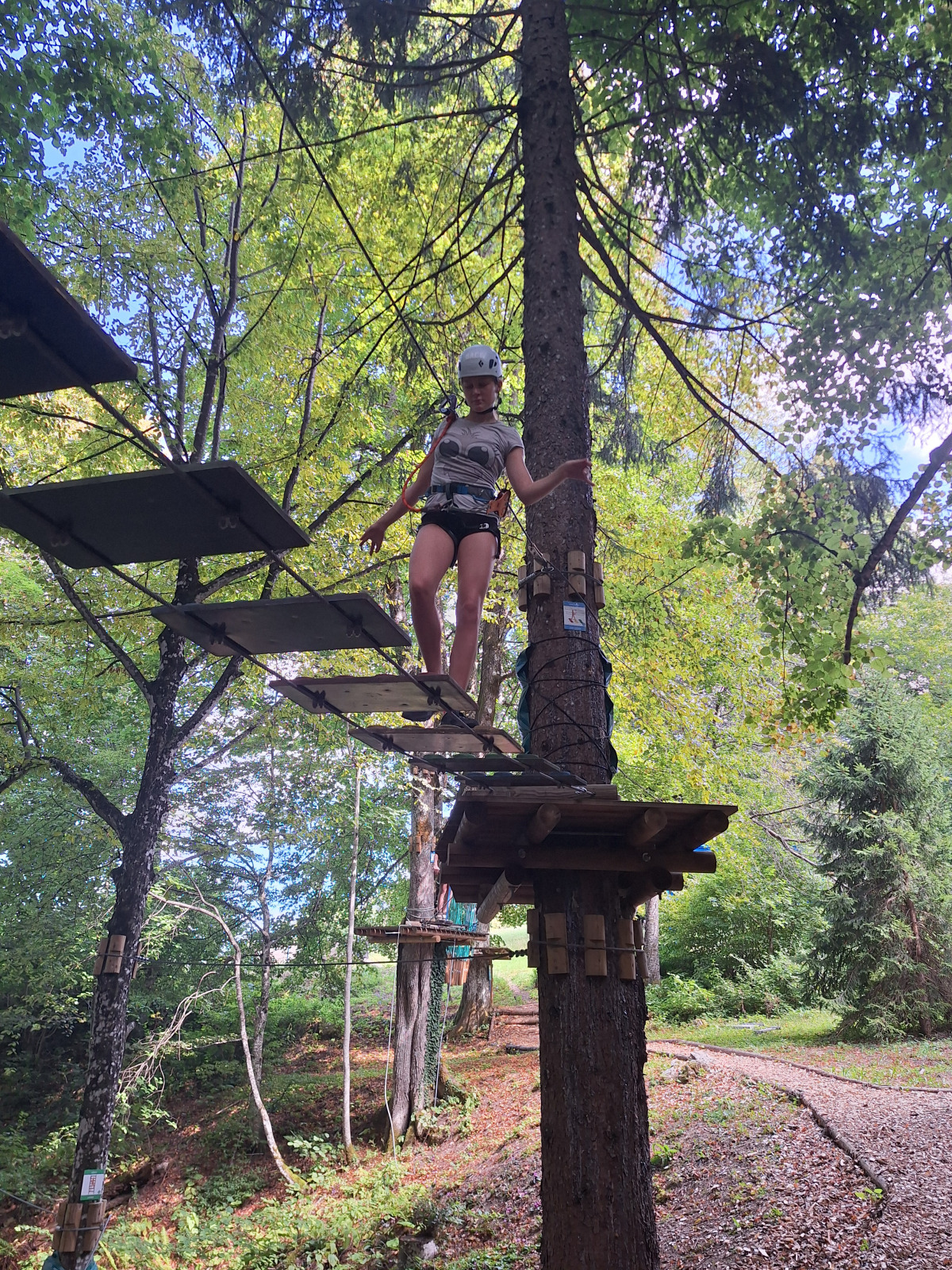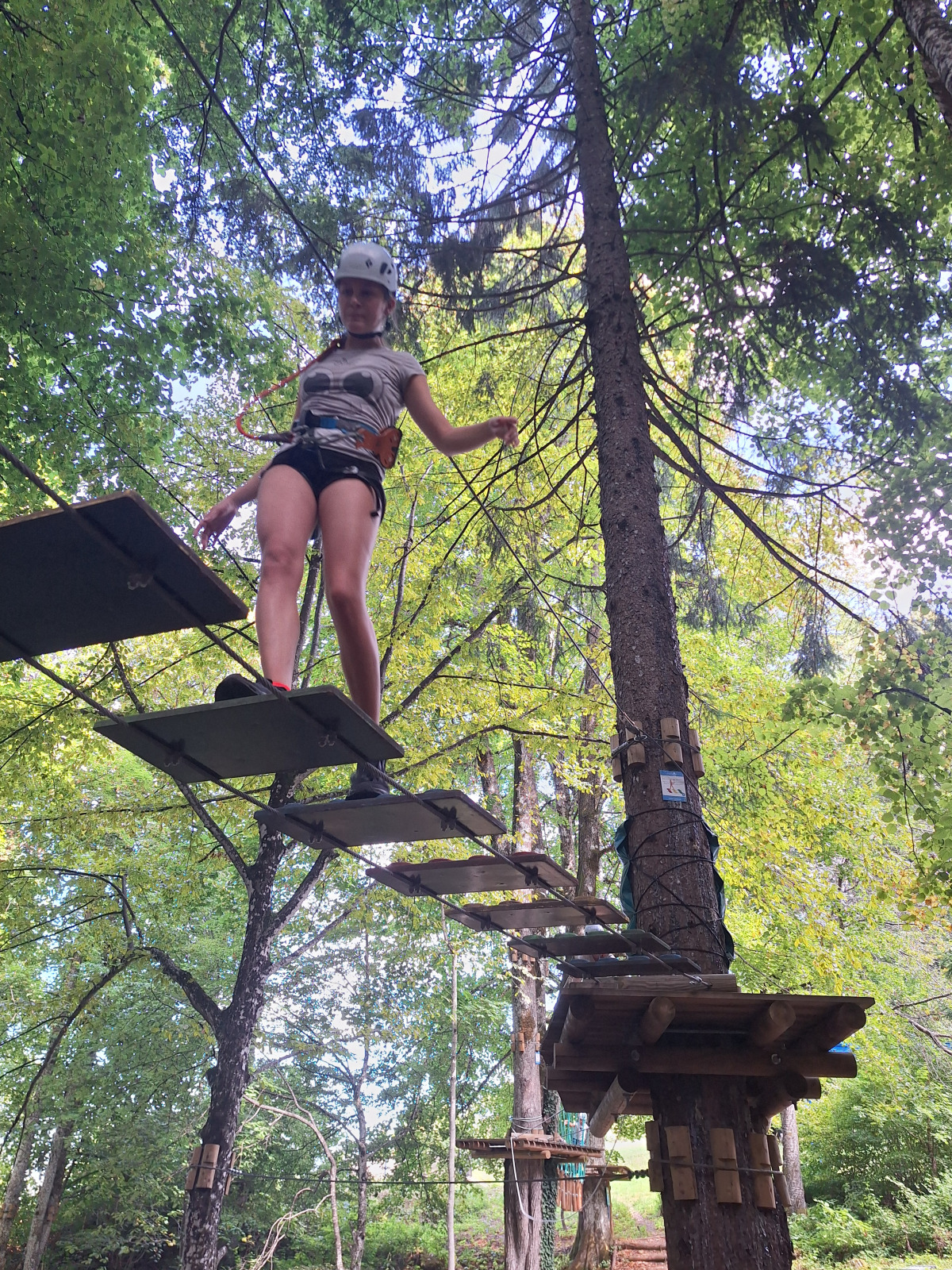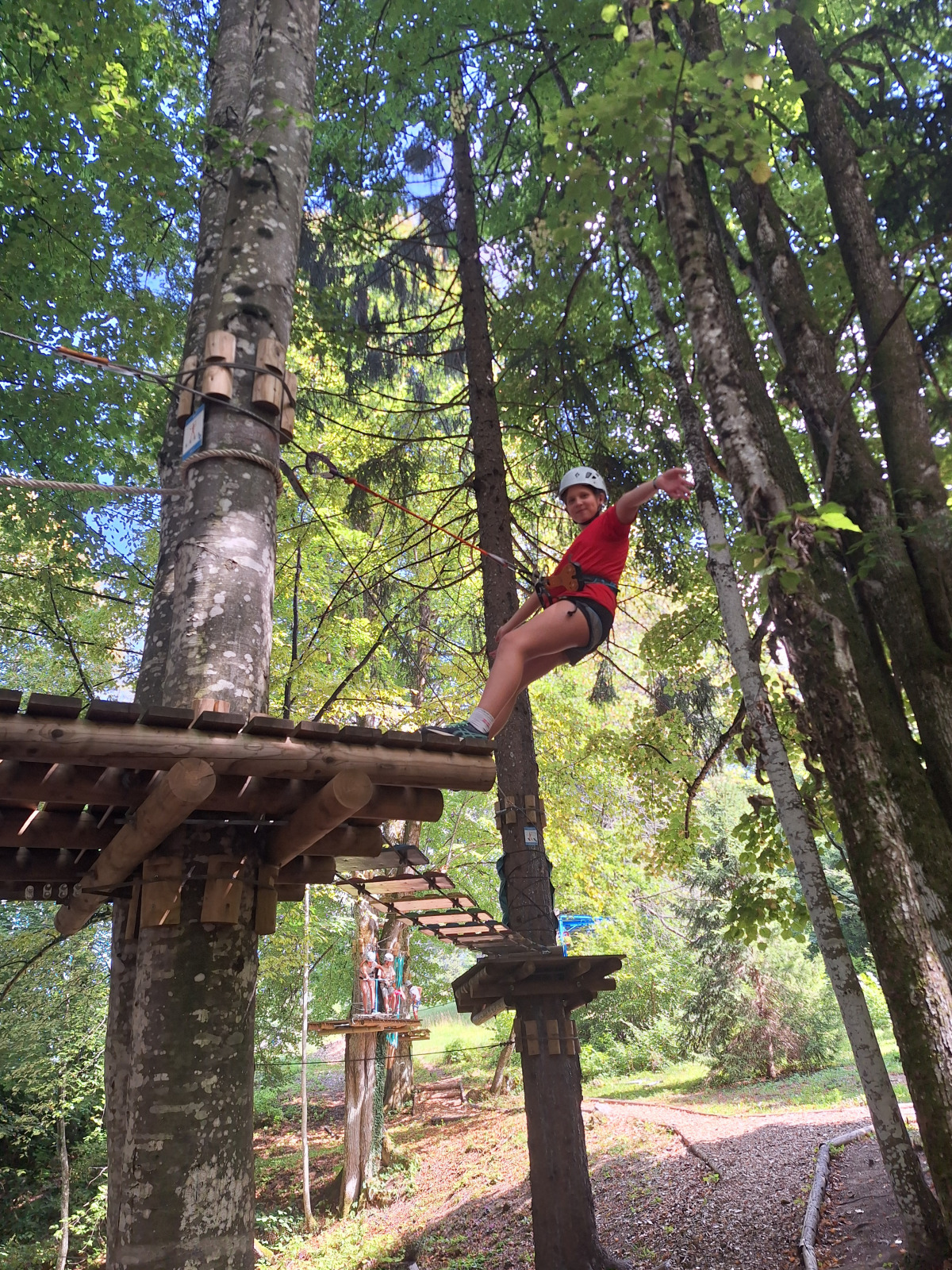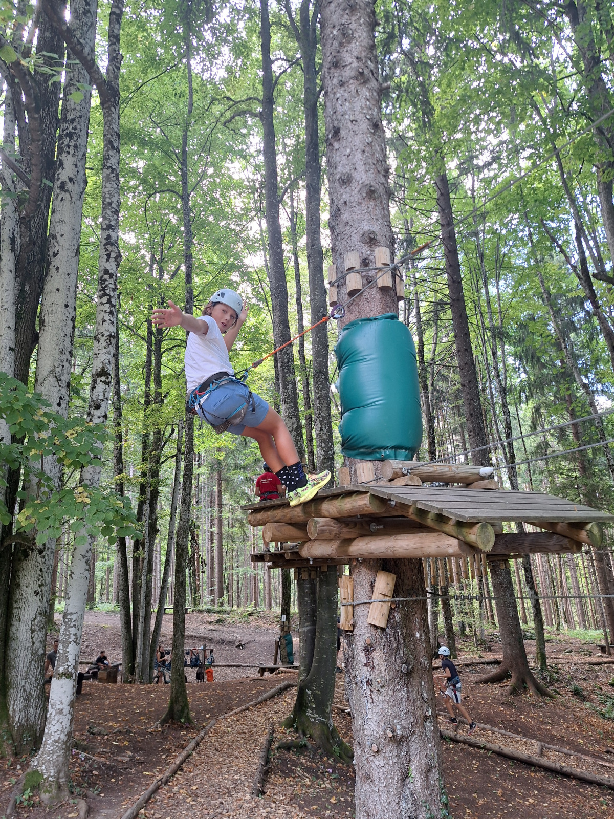 Dan smo začeli z jutranjo telovadbo v družbi muce. Zajtrkovali smo kruh in salamo, kasneje smo šli po jabolka in sladoled v trgovino. Zaradi Sašine pozabljivosti smo morali domov po njen ruzak, kjer smo tudi odložili jabolka. Odpravili smo se do učne poti Divji potok pri Črmošnjicah, kjer smo si ogledali mini slapove. Po nekaj urah zabave in muk smo končali s plezanjem v pustolovskem parku Gače, tam smo imeli tudi kosilo. Ko smo prišli nazaj, smo se takoj odpravili plavat. Voda ta dan je bila izjemno mokra in mrzla – imela je imela kar 18.2 stopinj. Nato smo igrali še odbojko. Po odbojki smo se odpravili nazaj do hiše, kjer nas je čakal poveljnik PGD Zreče Marjan Jelenko, ki je bil tudi policaj. Povedal nam je zanimive zgodbe o njegovi policijski in gasilski karieri. Skupaj smo povečerjali, odigrali še partijo kart in lam. Pol smo šli spat. Najboljše dogodivščine so nam bile pustolovski park in Marjanove zgodbice.