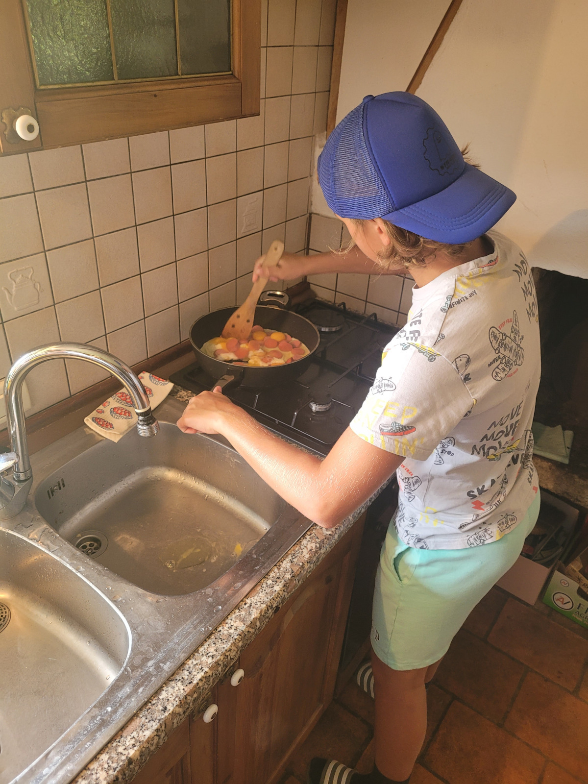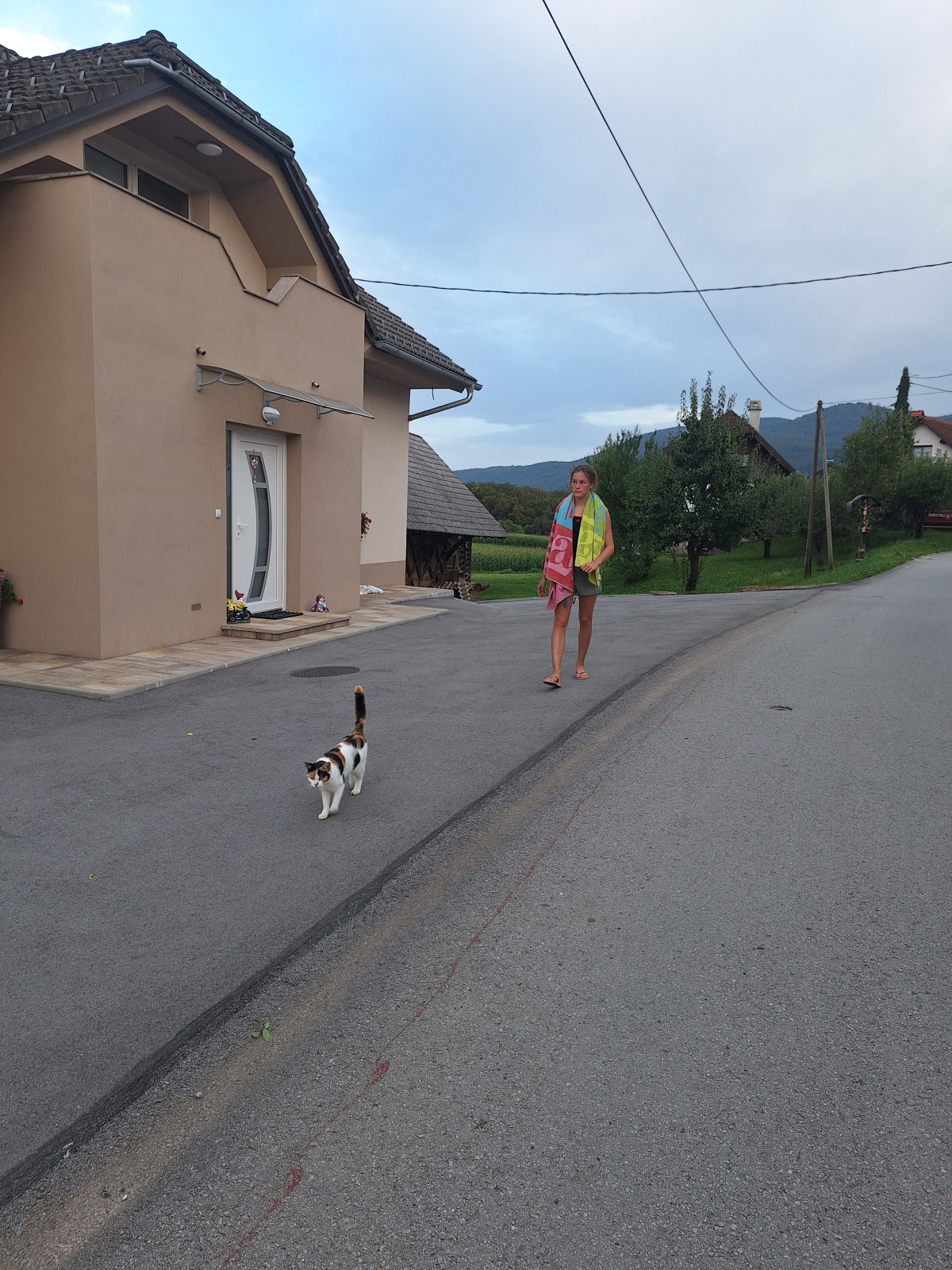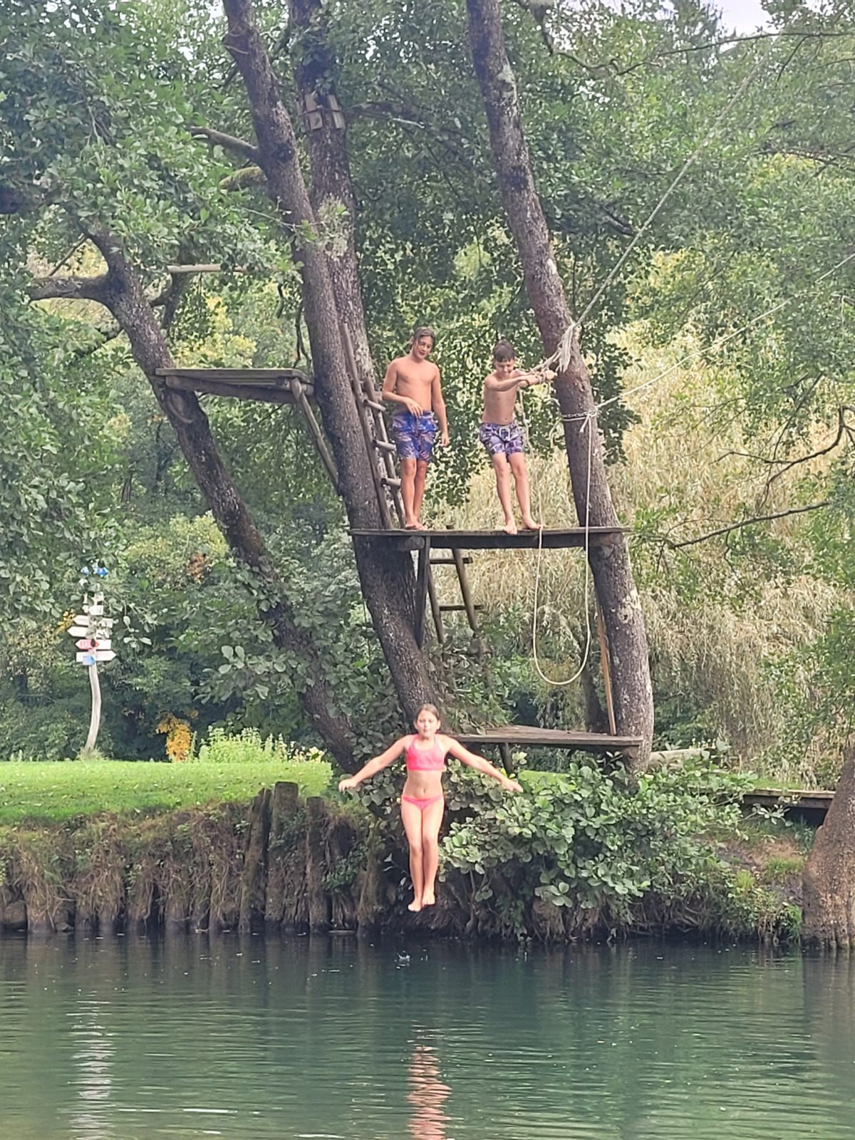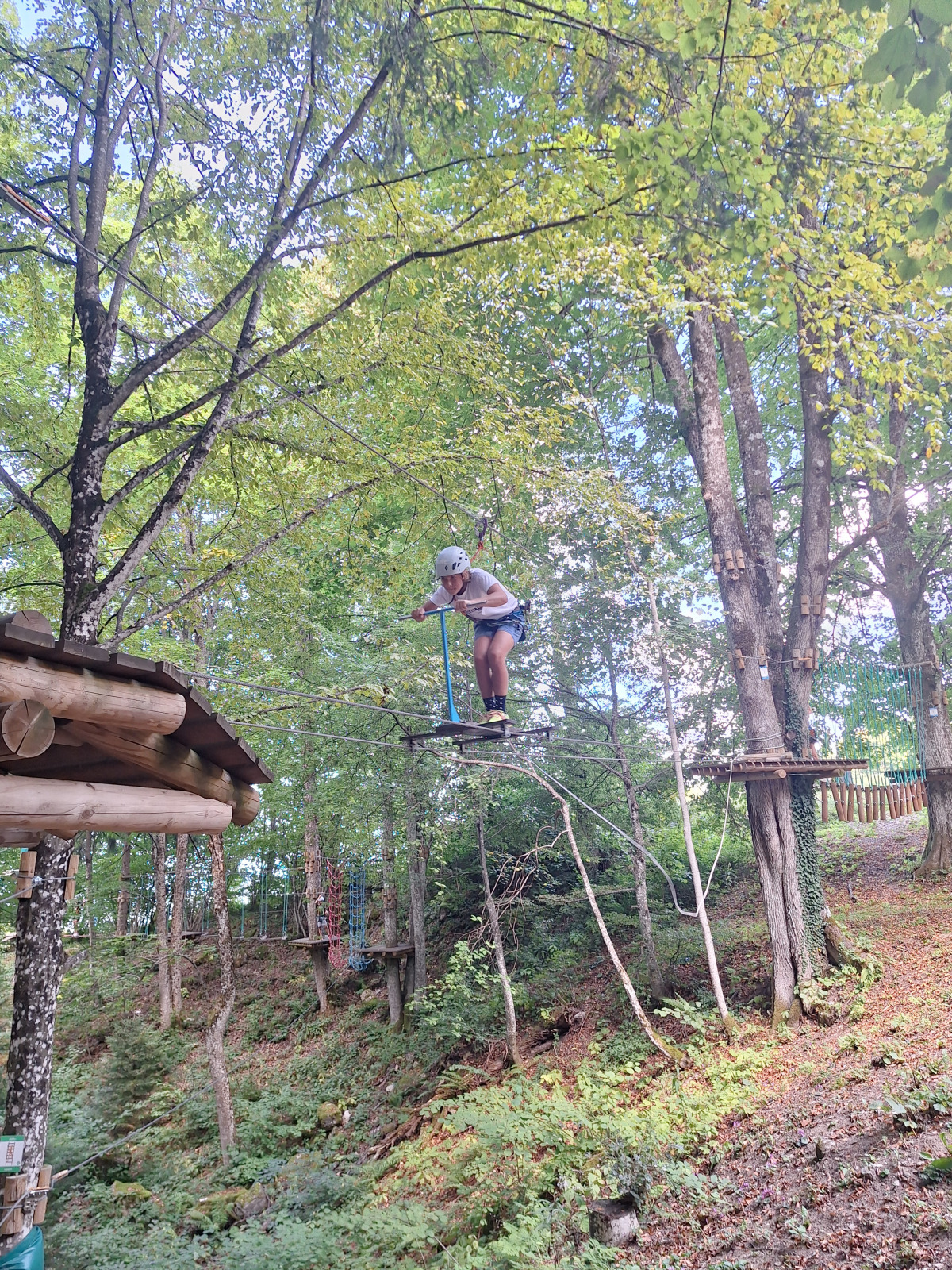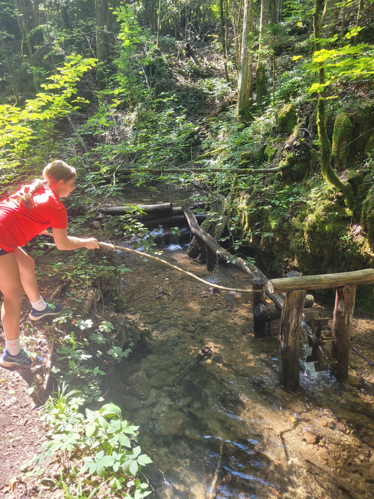 Dan smo začeli z jutranjo telovadbo v družbi muce. Zajtrkovali smo kruh in salamo, kasneje smo šli po jabolka in sladoled v trgovino. Zaradi Sašine pozabljivosti smo morali domov po njen ruzak, kjer smo tudi odložili jabolka. Odpravili smo se do učne poti Divji potok pri Črmošnjicah, kjer smo si ogledali mini slapove. Po nekaj urah zabave in muk smo končali s plezanjem v pustolovskem parku Gače, tam smo imeli tudi kosilo. Ko smo prišli nazaj, smo se takoj odpravili plavat. Voda ta dan je bila izjemno mokra in mrzla – imela je imela kar 18.2 stopinj. Nato smo igrali še odbojko. Po odbojki smo se odpravili nazaj do hiše, kjer nas je čakal poveljnik PGD Zreče Marjan Jelenko, ki je bil tudi policaj. Povedal nam je zanimive zgodbe o njegovi policijski in gasilski karieri. Skupaj smo povečerjali, odigrali še partijo kart in lam. Pol smo šli spat. Najboljše dogodivščine so nam bile pustolovski park in Marjanove zgodbice.