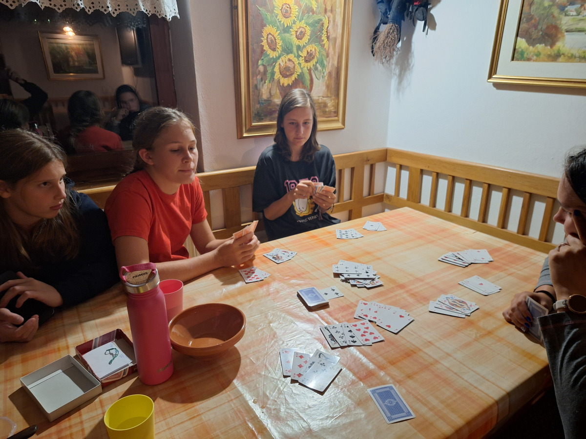 Zbudili smo se v hladnem jutru ob pol devetih. Po jutranji telovadbi smo se še malo zmigali s tem, da smo šli na lovsko kočo na Komanci. Takoj smo splezali tudi na lovsko opazovalnico in videli dva netopirja, ki sta zletela dol. Po malici smo se odpravili dol po malo drugačni poti in to nam ni bilo všeč. Ambrož in Rok sta snemala video o naših dogodivščinah. Prišli smo do kombija, nato pa smo se odpravili nazaj.Pojedli smo malo jabolk, potem pa smo se šli kopat v Krko. Tam je bil tudi tarzan s katerim se je bilo zelo zabavno spuščati v vodo. Po tem pa smo se igrali odbojko. Odpravili smo se nazaj na kosilo. Po kosilu smo imeli prosti čas, nato pa smo spet odpravili kopat. Na električnem žaru smo fantje pripravili večerjo. Po večerji so punce ostale zunaj, fantje pa smo šli na telefone. Dan smo končali s tem, da so punce ubile sršena. Pripravili smo se za spanje in zaspali. Najbolj so nam bile všeč dogodivščine ob in v Krki.